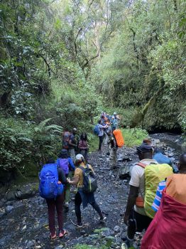 After an early morning breakfast in Arusha/Moshi, you will be picked up from your hotel and brought to the Momella Gate in Arusha National Park. At this time, the porters will organize and pack the belongings for the hike while you and your guide register with the Tanzania National Park (TANAPA). You will then begin your ascent in Arusha National Park. The first day of hiking is similar to a walking safari; you should expect to see giraffes, zebras, antelope, buffalo, and potentially elephants near the trail. Due to the high possibility of spotting wildlife, an armed ranger, hired through the National Park, is required to hike with our team for the duration of the hike. As you continue hiking, you will pass the Ngarenanyuki River and a beautiful waterfall at the base of Mt. Meru. Upon arriving to Miriakamba Hut (2500m), your chef will prepare a hot dinner and washing water for you.
